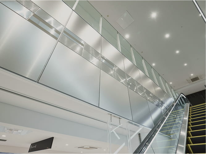大阪・関西万博のパビリオンや有名な海外ブランドのウィンドディスプレイなど、注目度の高いプロジェクトにおいても当社が研磨を手掛けたステンレス建材が使用されています。